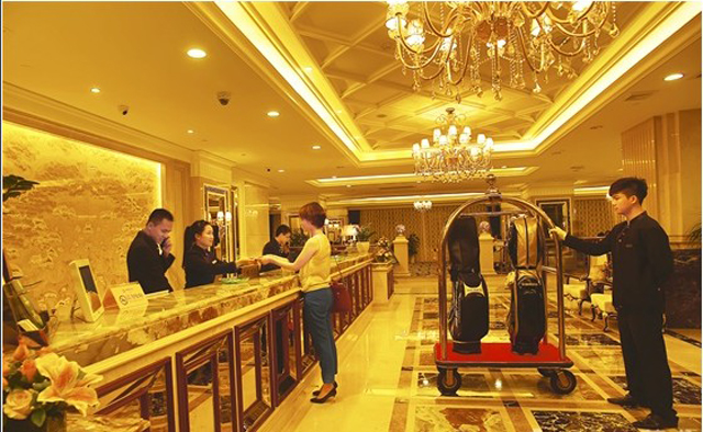 服务设施:酒店设施:免费Wifi、免费停车、健身房、商务中心、会议室、中餐厅、西餐厅、邮政服务、叫车服务、多种语言服务人员、叫醒服务、洗衣服务、送餐服务、旅游服务、专职行李员、擦鞋服务、行李寄存、有电梯、前台保险柜、公共区域闭路电视监控系统、咖啡厅、酒吧、无障碍通道、宴会厅、棋牌室、桑拿浴室、SPA、足浴/足疗、按摩保健、休闲会所、篮球场