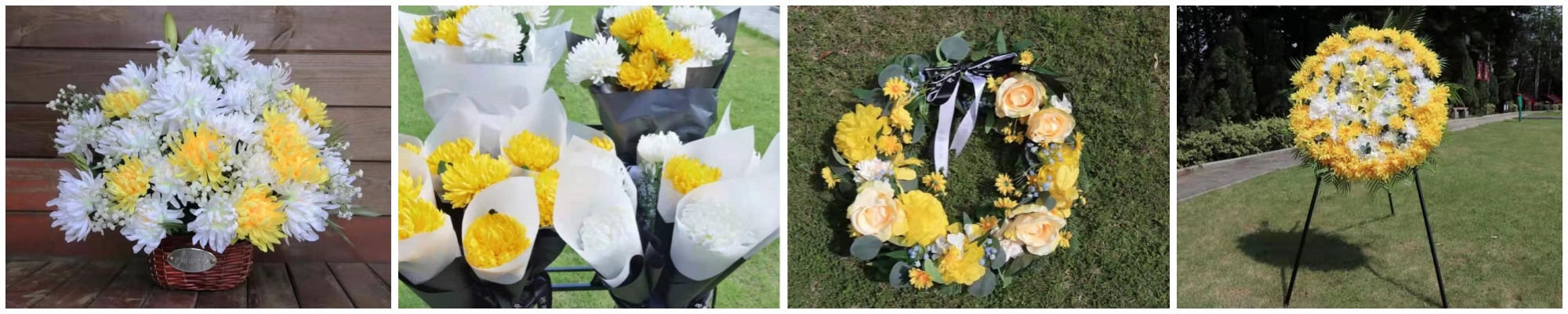 2.花圈租赁 仿真花:5元/支 小花圈:20元/个 花 篮:20元/个 大花圈:200元/个【含挽联】
